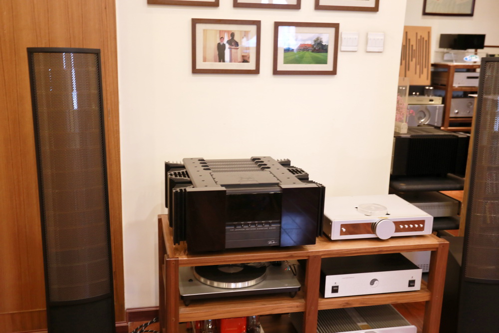 在活動前一天,姚先生和愛威影音的曾銘淵先生就做了充分的準備,根據之前對此次演示的劍橋50周年紀念版的三杰之一的EDGE A合并式放大器的特點了解,進行了大膽的試聽方案的策劃。EDGE A雖然標稱功率是XA類100瓦8歐200瓦4歐,看起來不是太大,原本想配備一對中型落地喇叭來演示。但是姚先生和曾先生卻不約而同的提出了可以嘗試讓EDGE A來驅動Martinlogan的旗艦CLX ART這對超大型揚聲器來作為此次演示會的搭配。原因是,雖然英國功放標稱功率看起來不大,但如果你看看它的參數中實際功耗是1000W!這樣的功放功耗是非常巨大的;很多功放雖然標稱200W每聲道,但實際功耗可能只標注著不到400W,這樣的功放也比比皆是。第二在實際的聽感上,這臺功放所輸出的功率也是十分的充沛,幾乎就是純A類100瓦的力量,由于之前視聽室里用的是貴豐的“鐵甲威龍”,A類150瓦的輸出,所以姚先生是非常熟悉的,當EDGE A 的100瓦XA類上去,其很多部分是相差無幾的,所以姚先生也很想去真正試一下用EDGE A來驅動Martinlogan旗艦CLX ART的設想!!
