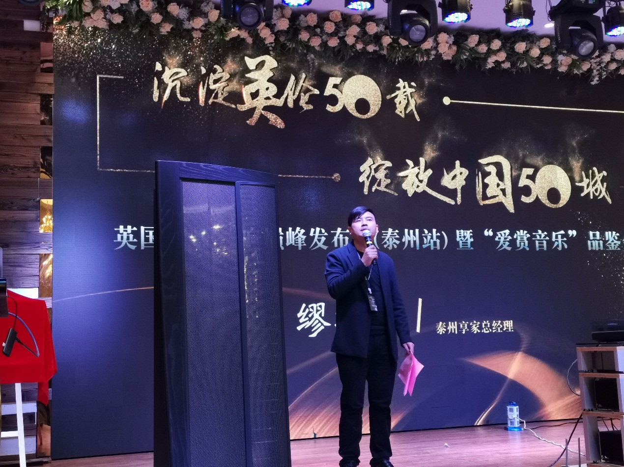 姚紹宏先生稱贊此次活動(dòng)是泰州影音界有史以來主辦的最大規(guī)模的音樂推廣活動(dòng),它既是作為一個(gè)擁有50年輝煌歷史的音響品牌在泰州市場的發(fā)布,同時(shí)也是一次高雅音樂的推廣及品鑒活動(dòng)。希望通過這樣一場別開生面的活動(dòng)讓更多的音樂愛好者領(lǐng)略用高品質(zhì)音響系統(tǒng)播放的高雅音樂帶給人們的極致體驗(yàn),從而讓更多的人愛上音樂,聆聽音樂。姚紹宏先生還興奮地宣布,泰州音樂協(xié)會(huì)與泰州享家、上海愛威影音聯(lián)合成立了屬于泰州音樂愛好者自己的民間組織——“泰州愛樂社”,將定期開展各類音樂品鑒活動(dòng),讓更多的人更接近音樂、了解音樂、感受音樂,讓音樂成為大家溝通的橋梁和成長的階梯。