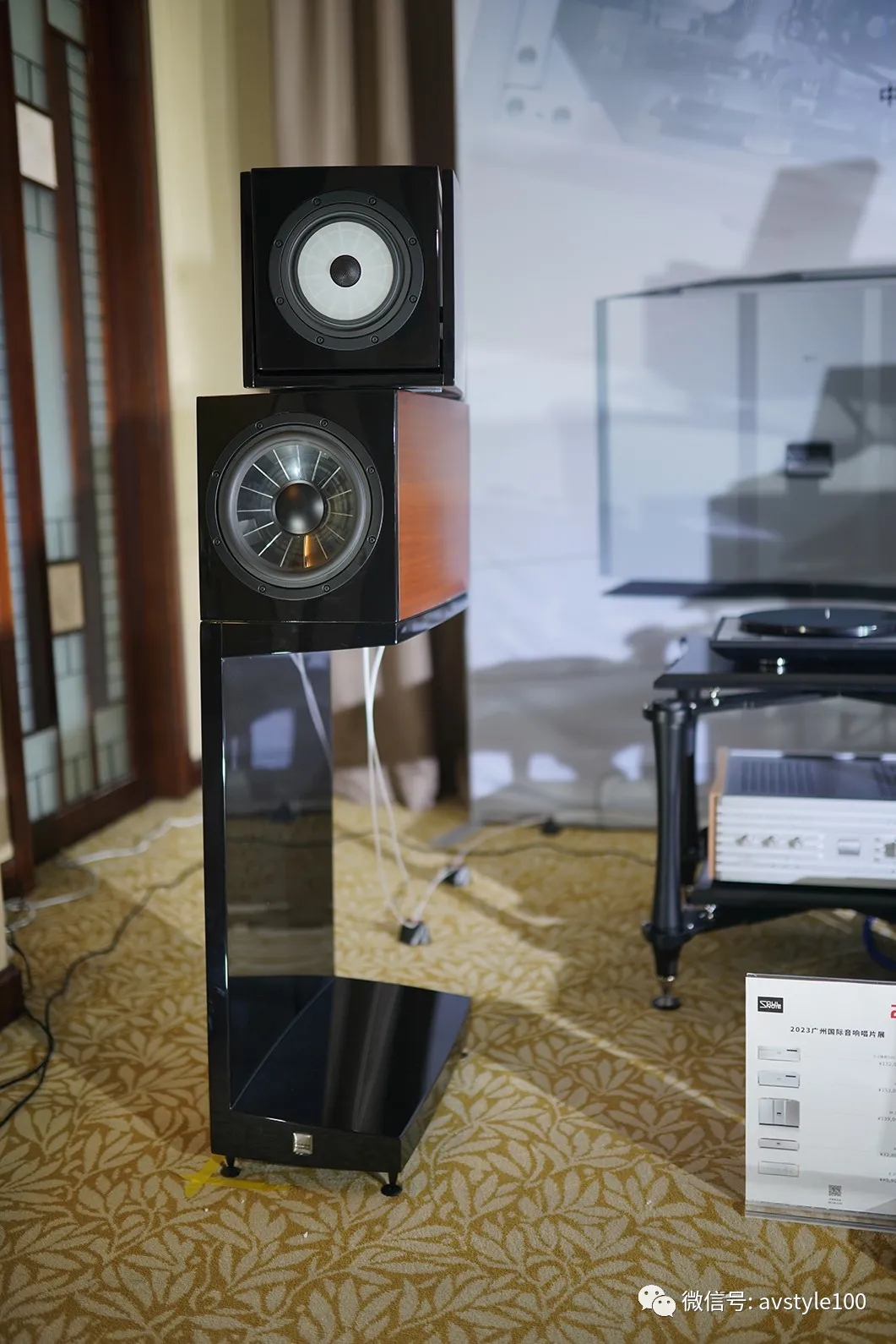 同時也是這對喇叭首次在廣州展展出。我們搭配來自德國奧勒巴赫的旗艦線材和美國光速電源處理器。讓這套看起來非常漂亮的組合也能迸發出驚人的聲音。
