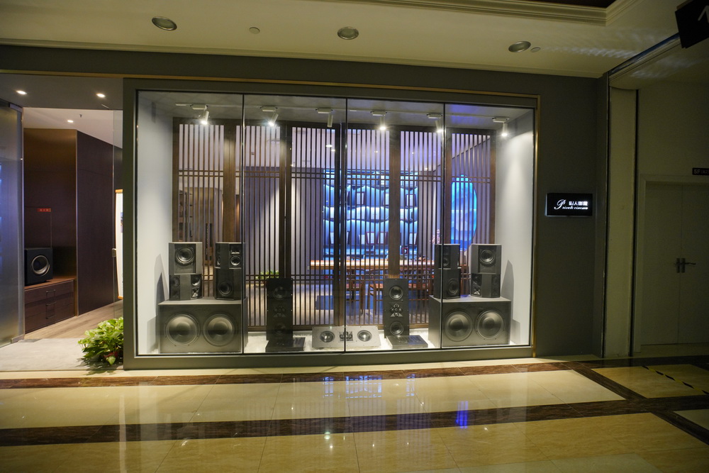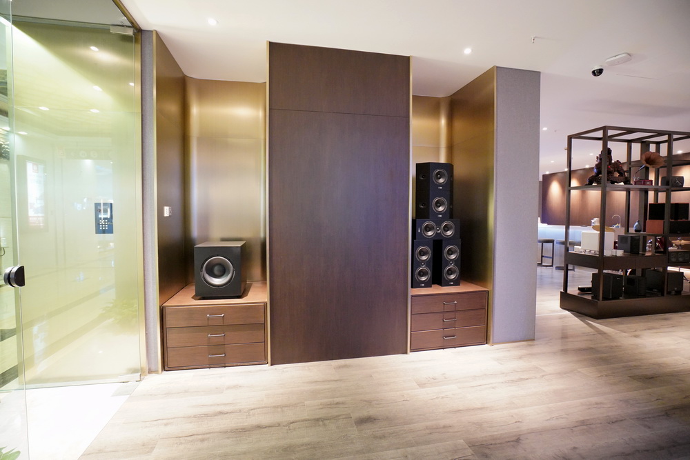 James Mavericks M152超低音在這樣一個40來平米的空間依然可以把低頻填充得滿滿當當,并下潛到20HZ以下,之前設計是在這個空間中擺放兩只M152,不過在經過反復測試后發現,一只M152就已經能達到參考級效果,于是就像前文中提到的把另外一只放在櫥窗里作為門口的“鎮店之寶”來展示。
