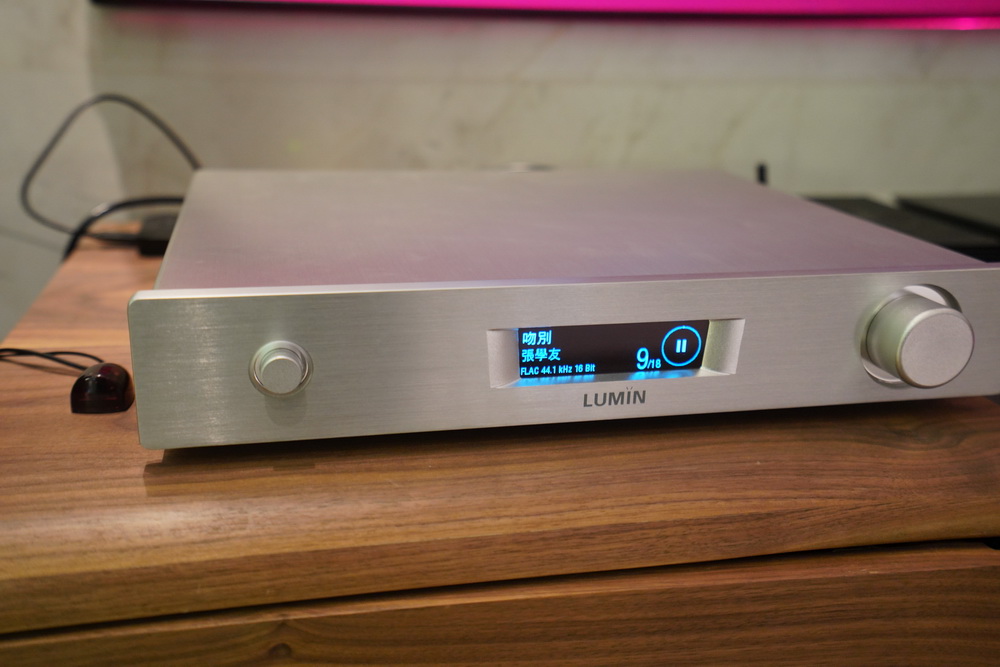 客廳中也有專門的HIFI音樂播放,采用Lumin錄銘M1流媒體音樂播放機,同時本身M1也是一臺功放,只要接到一對喇叭上就可以是一套出眾的HIFI系統??梢宰x取硬盤上,NAS中存儲的各種音樂,也可以通過Airplay的方式推送移動設備上的音樂內容給Lumin來播放,真是既方便,又好聲,幾千張專輯上萬首歌曲任意選擇,暢游在音樂圖書館中。