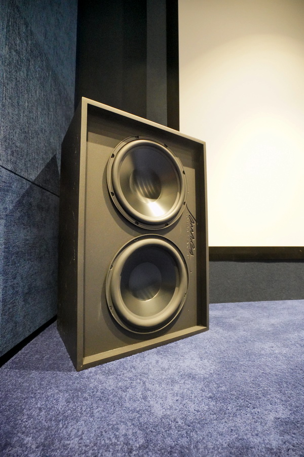 大地震最新的Minime-DSP12超低音,這個雙12寸的超低音是目前大地震超低音系統中科技含量最高的型號,可以通過專門的軟件來自動EQ矯正超低音在這個空間中的效果,同時通過手機APP來控制超低音的各個選項,所以即便這個空間沒有嚴格的聲學處理,還是可以通過DSP12的超低音自動矯正系統,來獲取最好的低頻響應曲線,消除原本存在的駐波,讓低音更加平滑舒暢。