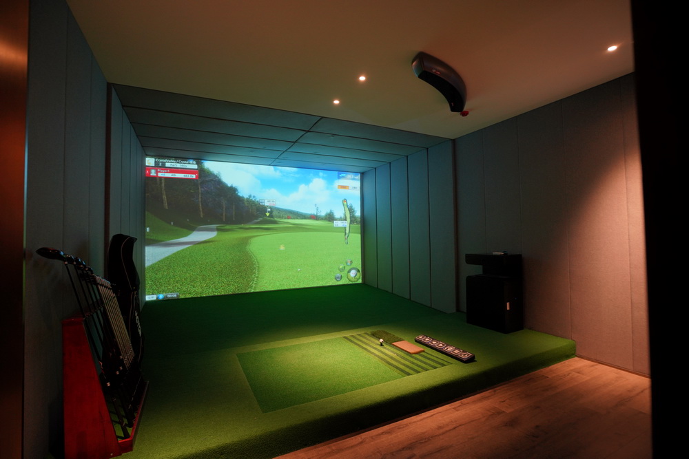 除了有兩間用途風格各異的視聽室,還有一個專門的空間可以玩高爾夫,虛擬高爾夫是高爾夫球愛好者們的福音,在家就能上各個國際高爾夫球場打高爾夫,不受時間和天氣的限制。鍛煉了身體還提升了球技,也是目前家庭娛樂項目中最常見的一種方式。
