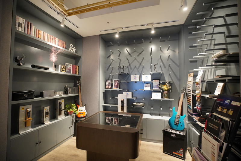 最后還有一個區域陳列了各種數碼藍牙音響,線材,視聽室的外包透聲布,指紋鎖等,能夠盡可能的把居家環境中需要的相關的產品融為一體,體現豐富和多樣。