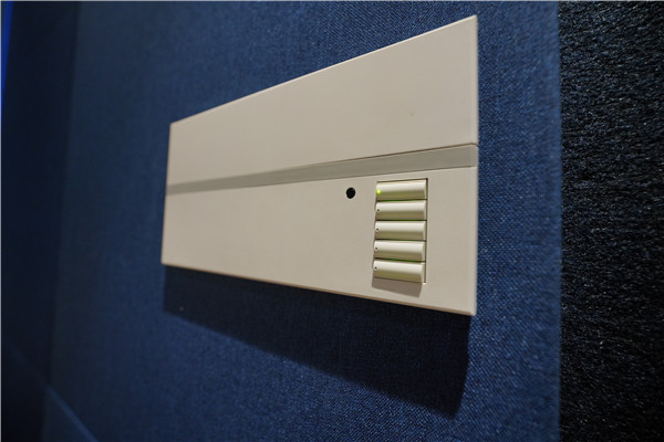裝修設計上同樣也是以簡潔大方簡單為主,配合著幾種簡單的燈光類型,在基礎墻面上安裝了一些聲學模塊,這些藍色的聲學模塊各有不同的作用,有的是吸音有的是擴散,還有個別4個是預安裝了揚聲器。