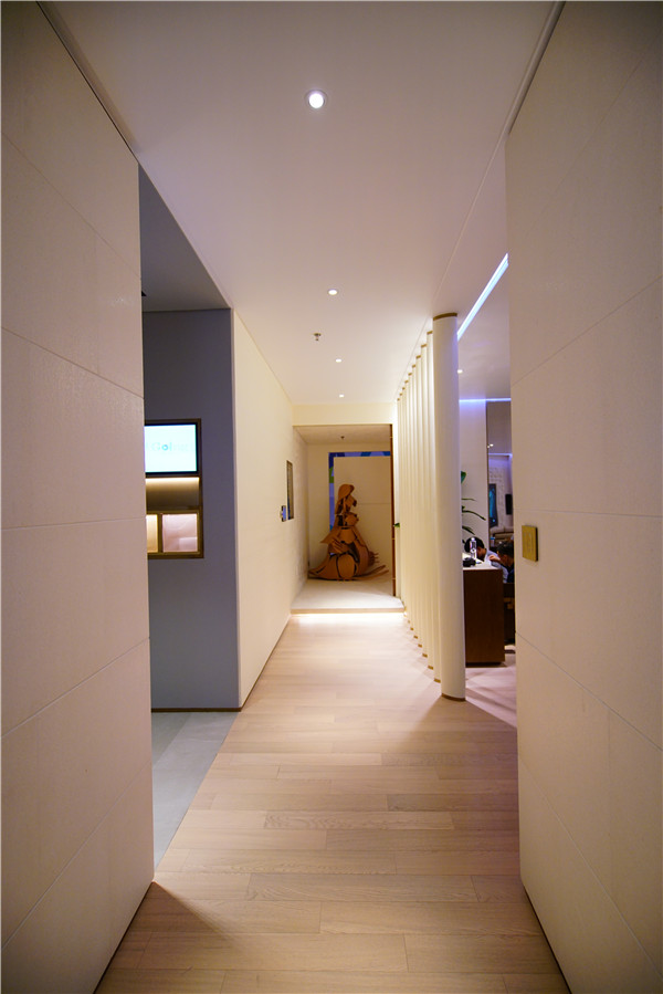 體驗中心設計未來感十足但又不乏時尚與優雅,整個空間寬敞而又不拘一格。大廳一側為精心打造的HIFI客廳影院,由MartinLogan音響、劍橋五十周年EDGE系列功放、120寸激光電視組成的客廳娛樂系統,令人耳目一新,消費者可以享受最HIFI的影音娛樂。