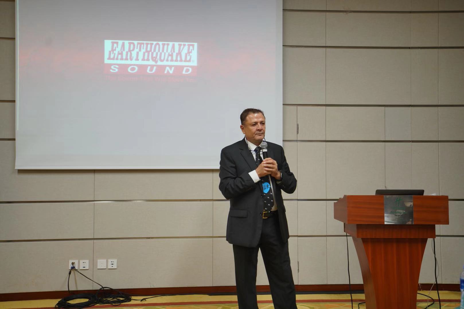 緊接著,愛(ài)威影音緊密合作伙伴——美國(guó)Earthquake Sound大地震創(chuàng)始人兼CEO Joseph先生為我們帶來(lái)全新旗艦Cinenova影院系列的產(chǎn)品發(fā)布以及品牌背后的故事。