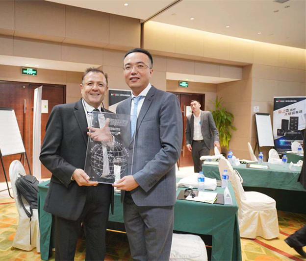分享會(huì)現(xiàn)場(chǎng)Joseph專門(mén)為愛(ài)威影音頒發(fā)了“全球最佳合作伙伴”的獎(jiǎng)牌。