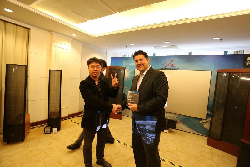 之后,愛賞音威副總經理曾銘淵先生上臺為大家詳細介紹了此次9.2聲道的全靜電革命性系統,并通過電影《007大破天幕危機》、《奧林匹斯的陷落》以及《阿黛爾》演唱會等片段展示ML精彩絕倫的零失真表現,整個環境系統搭建的效果得到在場聽眾的充分認可。